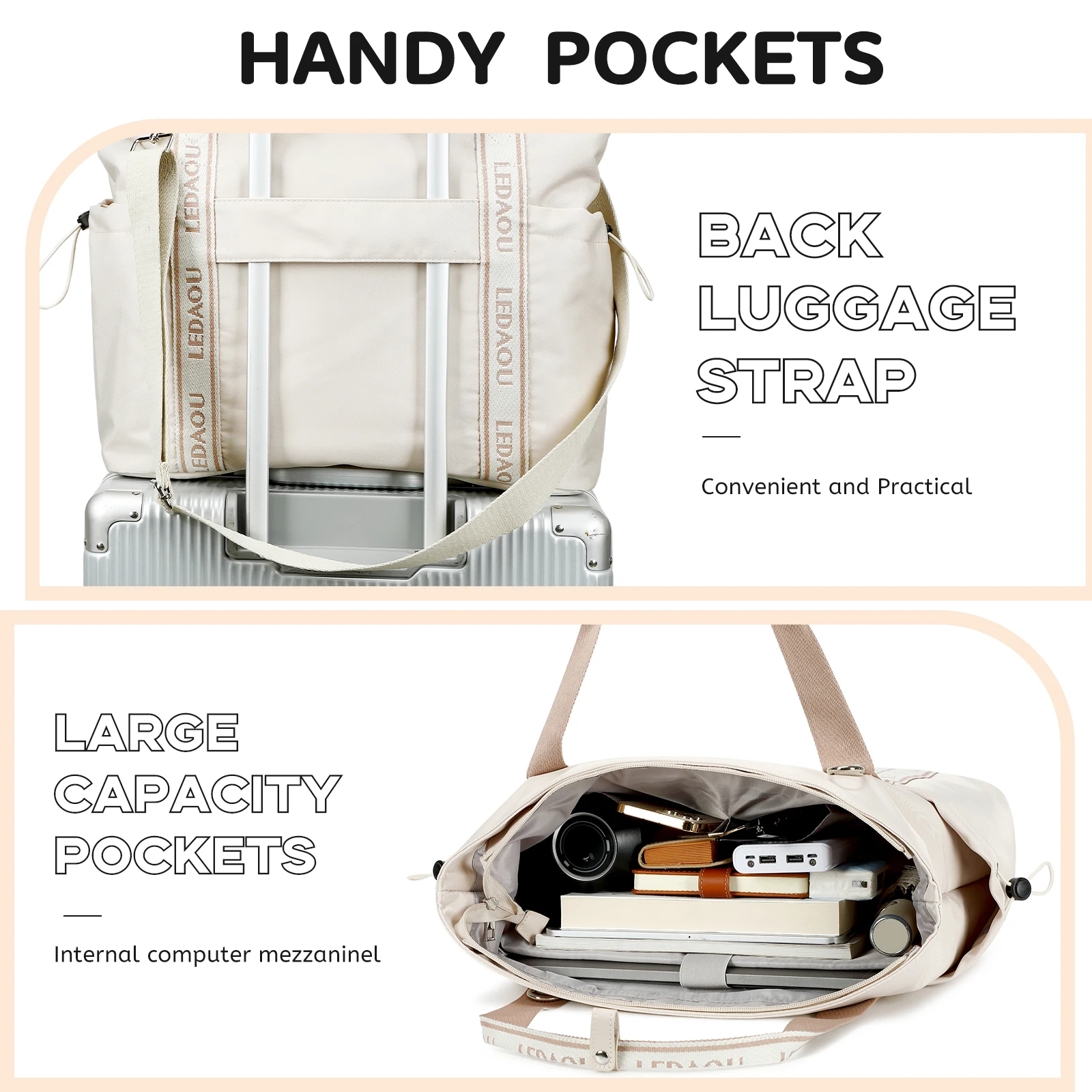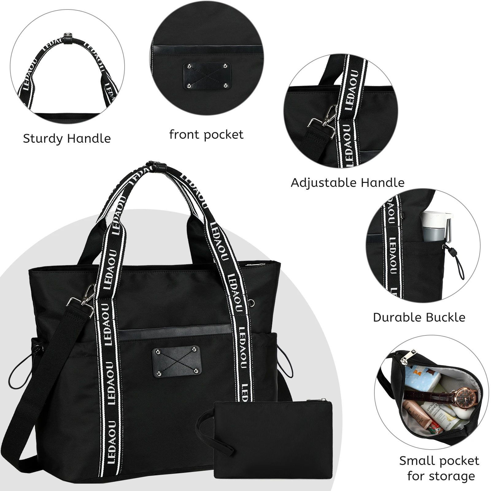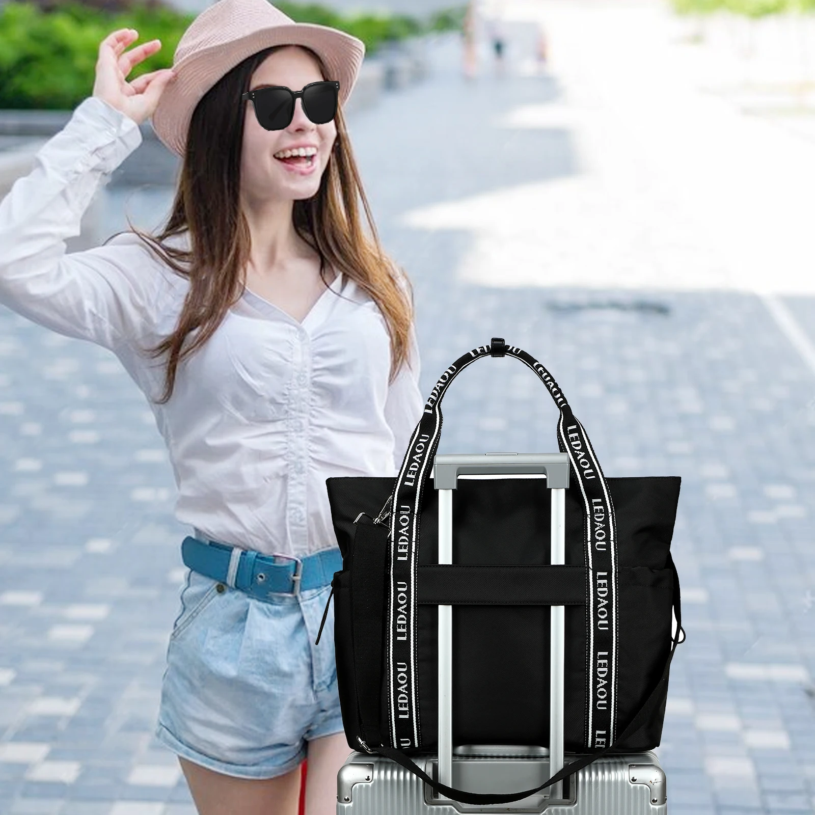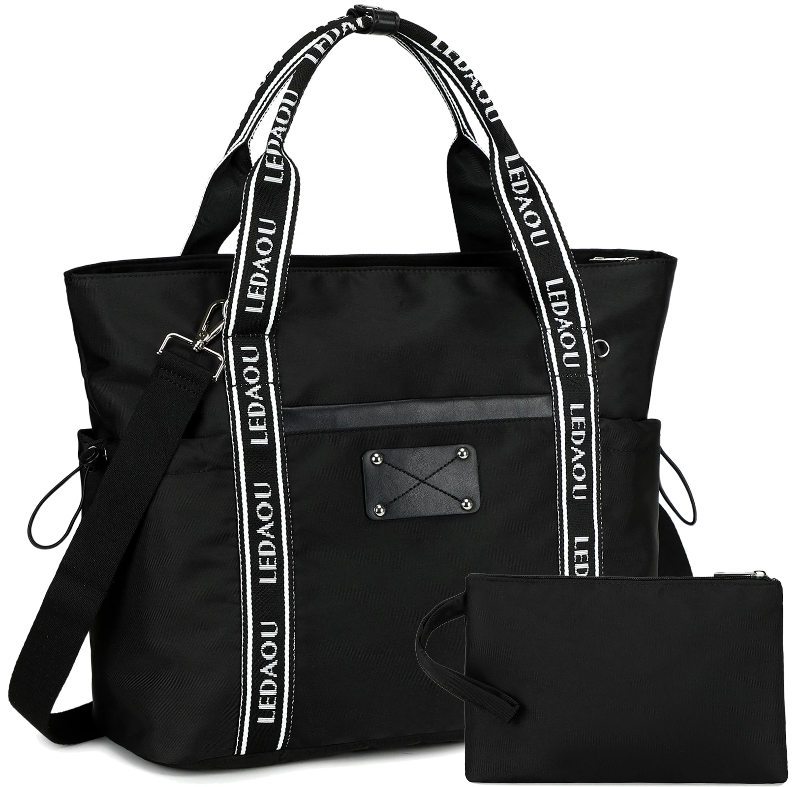 Customizable Large Laptop Tote Bag for Work Teacher Sport Travel Gym Unisex Overnight Carry-On Zipper Closure Letter Webbing
